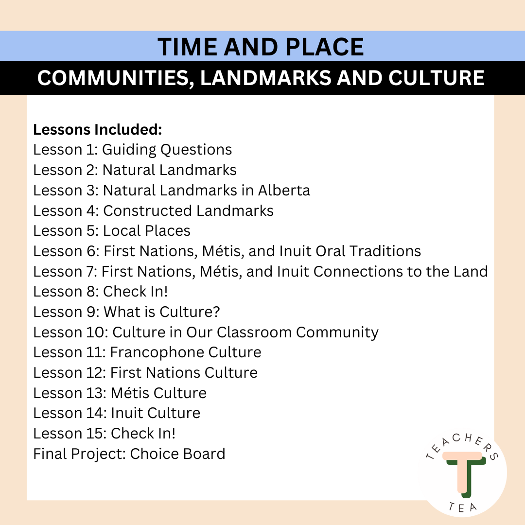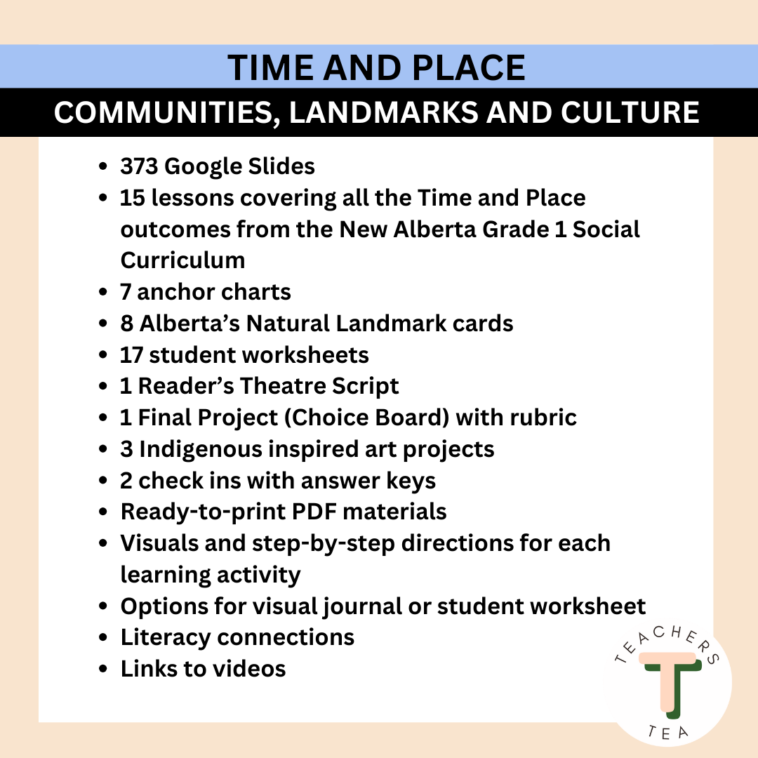 - 15 lessons covering all the Time and Place outcomes from the New Alberta Grade 1 Social Curriculum