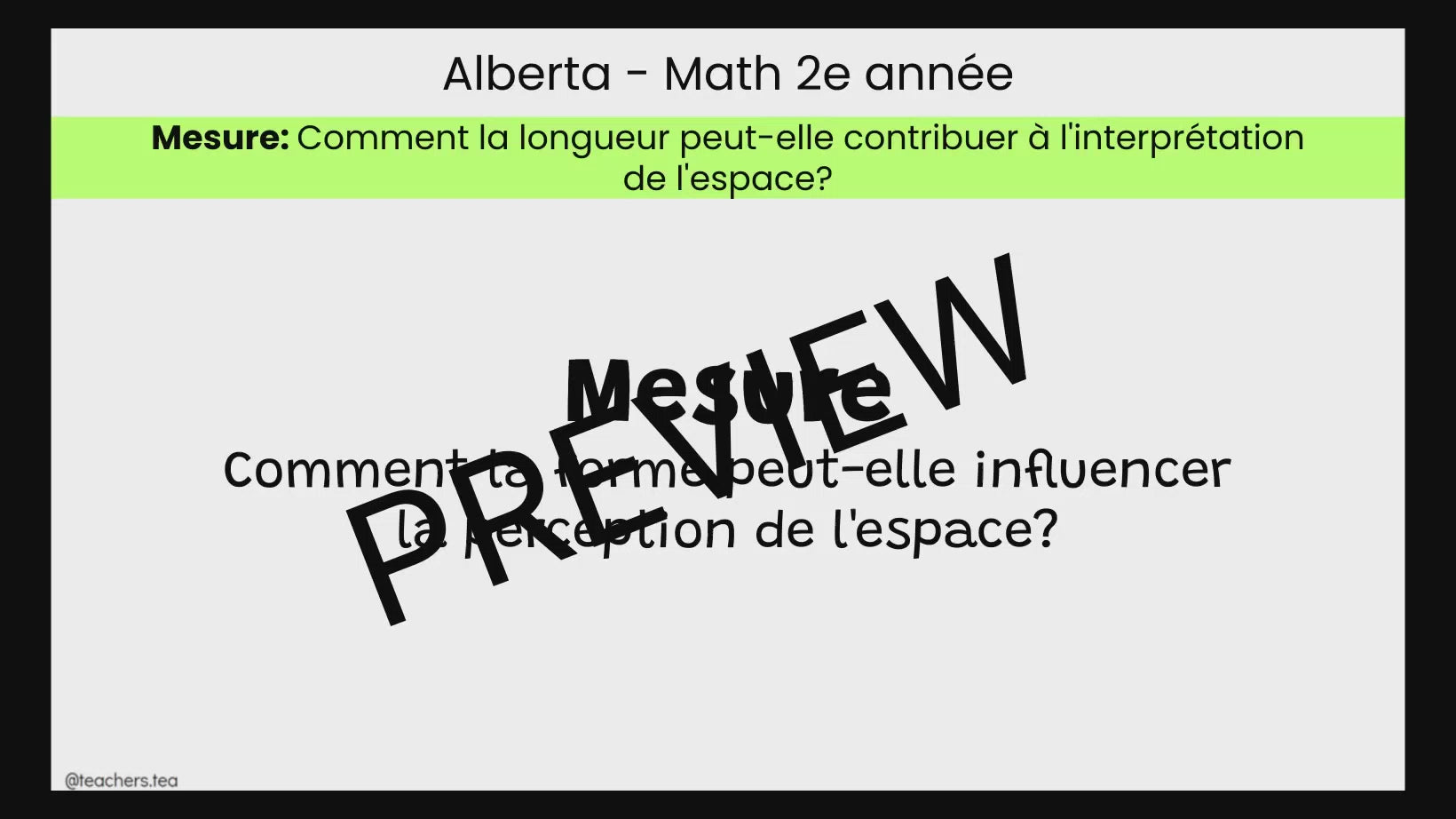Do you need a ready to teach FRENCH resource for the New Alberta Math Curriculum? This is a google slides resource that covers all the Knowledge, Understanding, Skills and Procedures from the Alberta grade 2 math curriculum for the Learning Outcomes for Measurement.