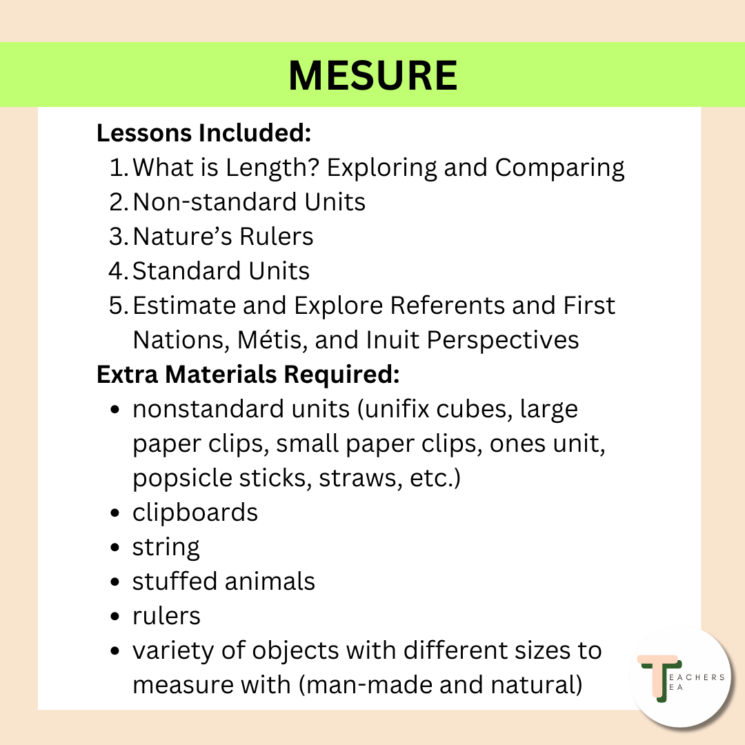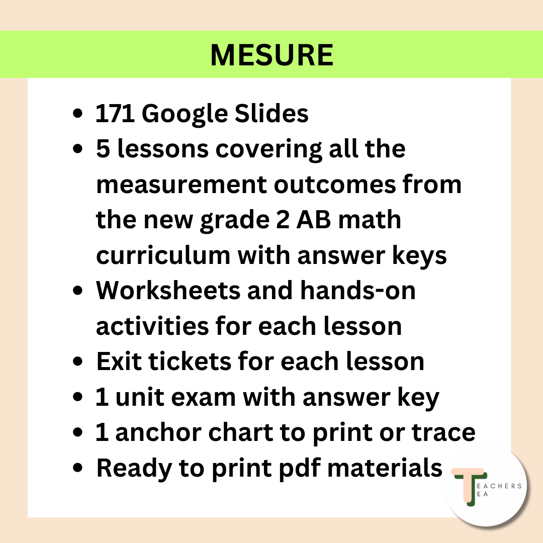 - 5 lessons covering all the measurement outcomes from the new grade 2 AB math curriculum with answer keys