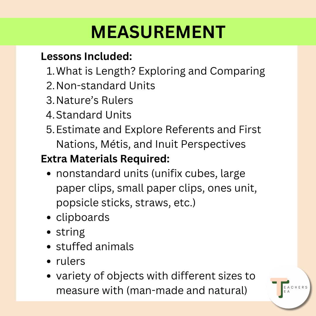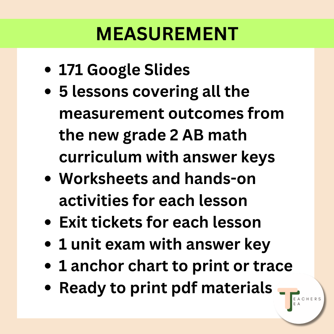 - 5 lessons covering all the measurement outcomes from the new grade 2 AB math curriculum with answer keys