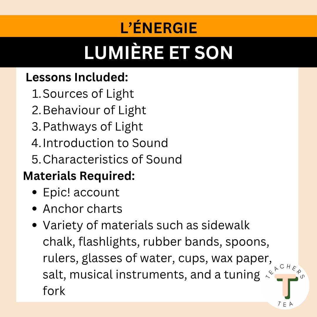 Alberta Grade 2 New Science Curriculum FRENCH - ENERGY - Light and Sound