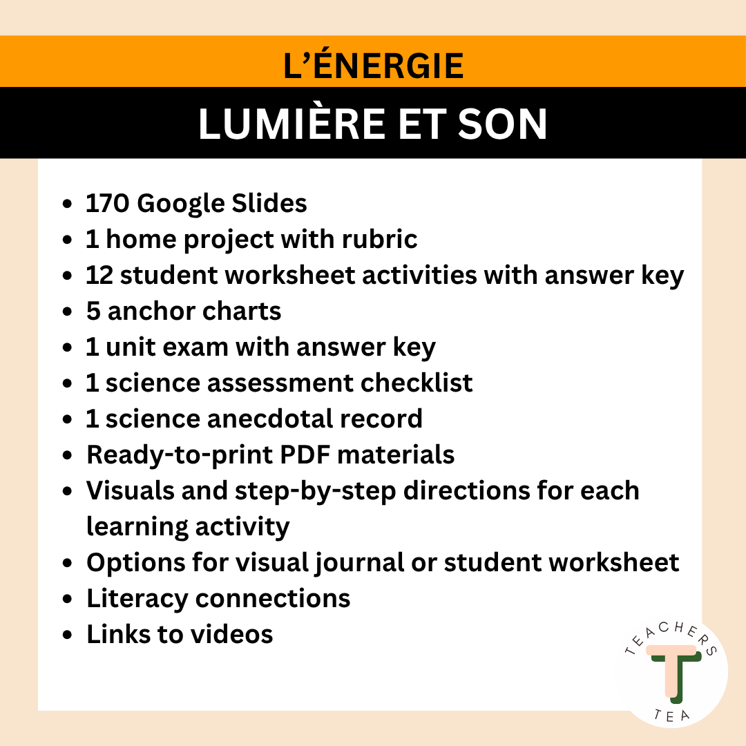 Do you need a ready to teach FRENCH resource for the NEW Alberta Science Curriculum? This is a Google Slides resource that covers all the Knowledge, Understanding, Skills and Procedures from the Alberta grade 2 science curriculum for the Learning Outcomes for Energy.