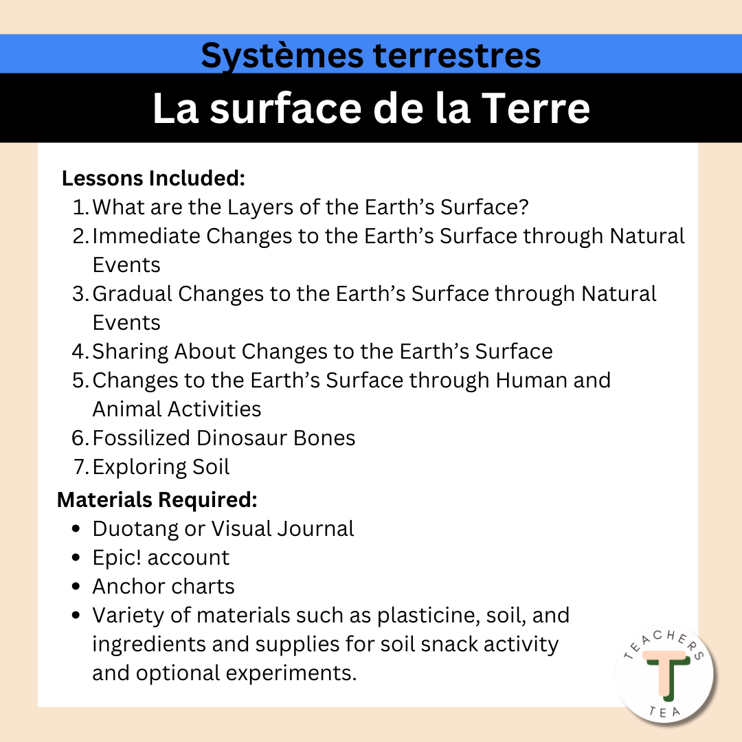 Alberta Grade 3 NEW Science Curriculum - EARTH SYSTEMS - Earth's Surface FRENCH