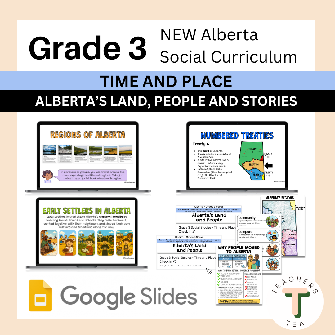 Do you need a ready to teach resource for the NEW Alberta Social Curriculum? This is a Google Slides resource that covers all the Knowledge, Understanding, Skills and Procedures from the Alberta grade 3 social curriculum for the Learning Outcomes for Time and Place.