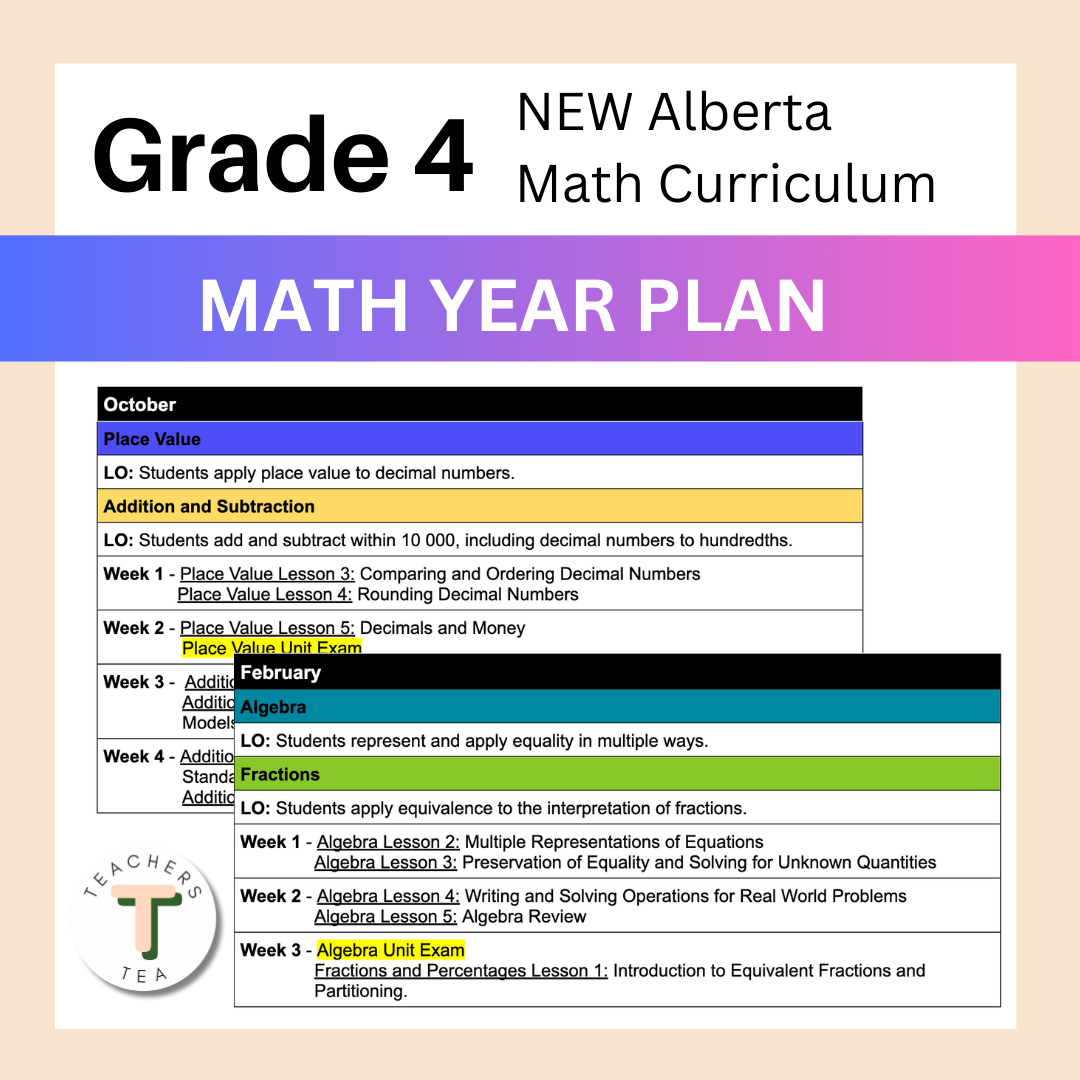 Alberta Grade 4 Math - Year Plan - Full Lesson Breakdown Sept-June