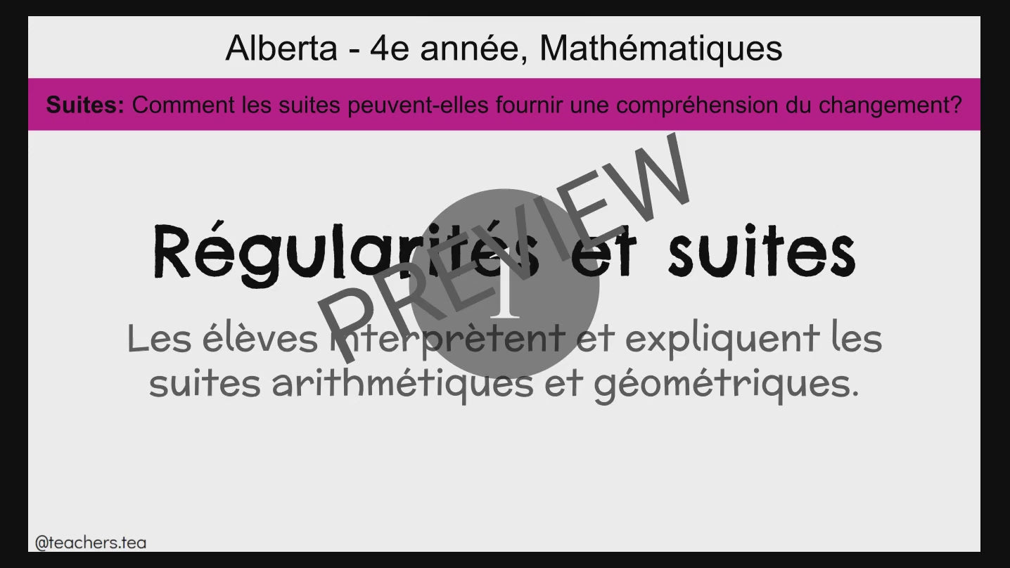 Alberta Grade 4 Math FRENCH - Patterns and Sequences