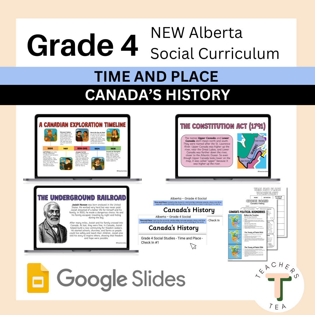 Do you need a ready to teach resource for the NEW Alberta Social Curriculum? This is a Google Slides resource that covers all the Knowledge, Understanding, Skills and Procedures from the Alberta grade 4 social curriculum for the Learning Outcomes for Time and Place.