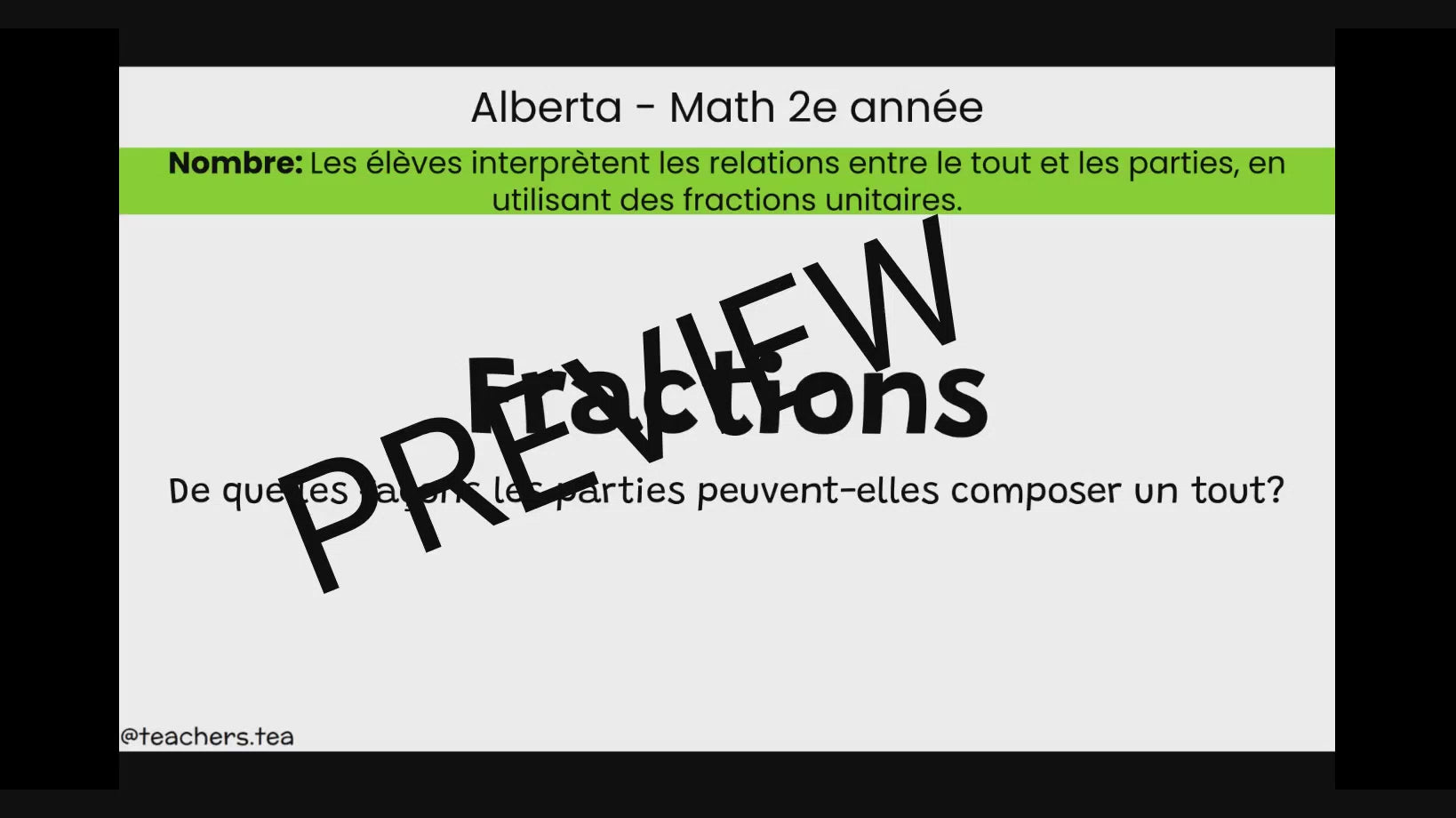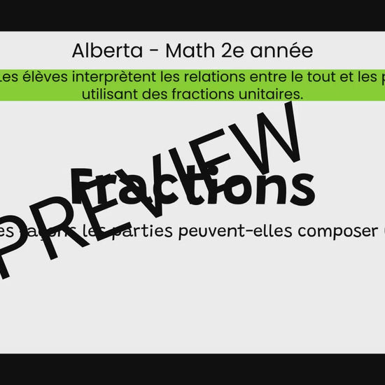 Do you need a ready to teach FRENCH resource for the NEW Alberta Math Curriculum? This is a google slides resource that covers all the Knowledge, Understanding, Skills and Procedures from the Alberta grade 2 math curriculum for the Learning Outcomes for Numbers (Fractions).