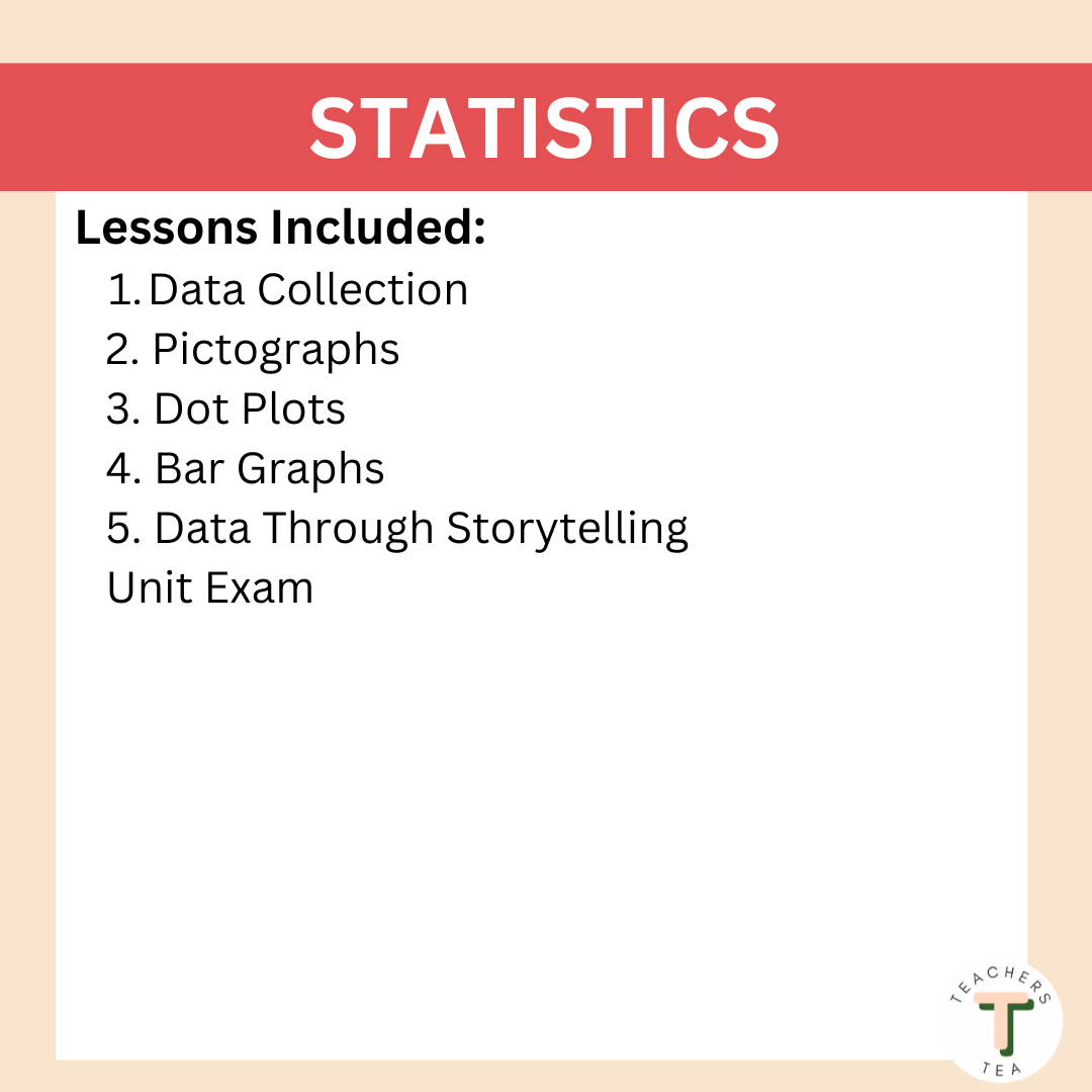 - Engaging visuals and graphs including bar graphs, dot plots and pictographs