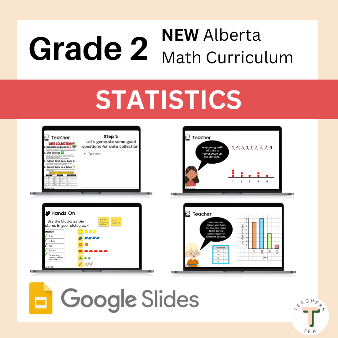 Do you need a ready to teach resource for the NEW Alberta Math Curriculum? This is a google slides resource that covers all the Knowledge, Understanding, Skills and Procedures from the Alberta grade 2 math curriculum for the Learning Outcomes for Statistics.